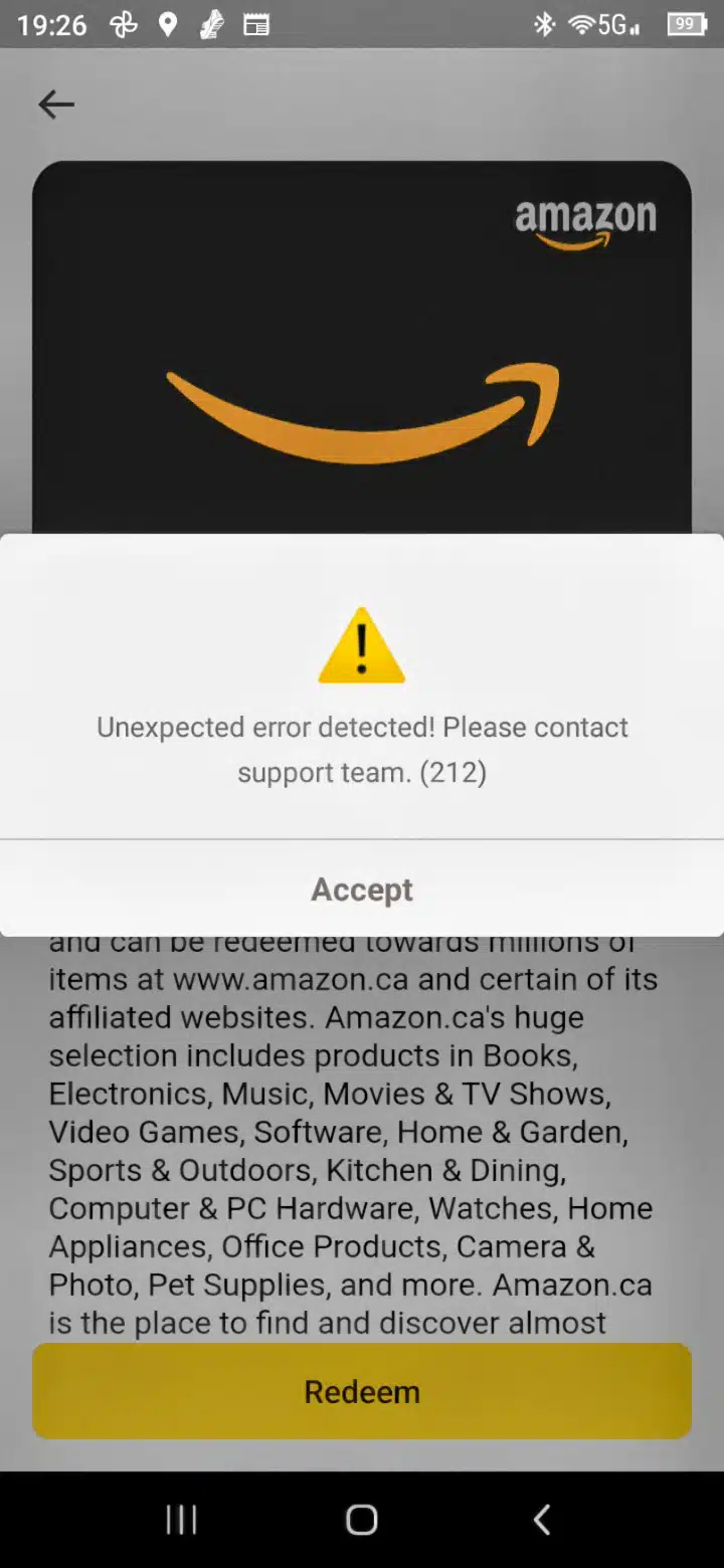 Whom may it concern I earned Amazon reward $5 by accumulating 2250 points, but I can't accumulate it on the Amazon site. What should I do? I'll attach a picture as well. Please answer.