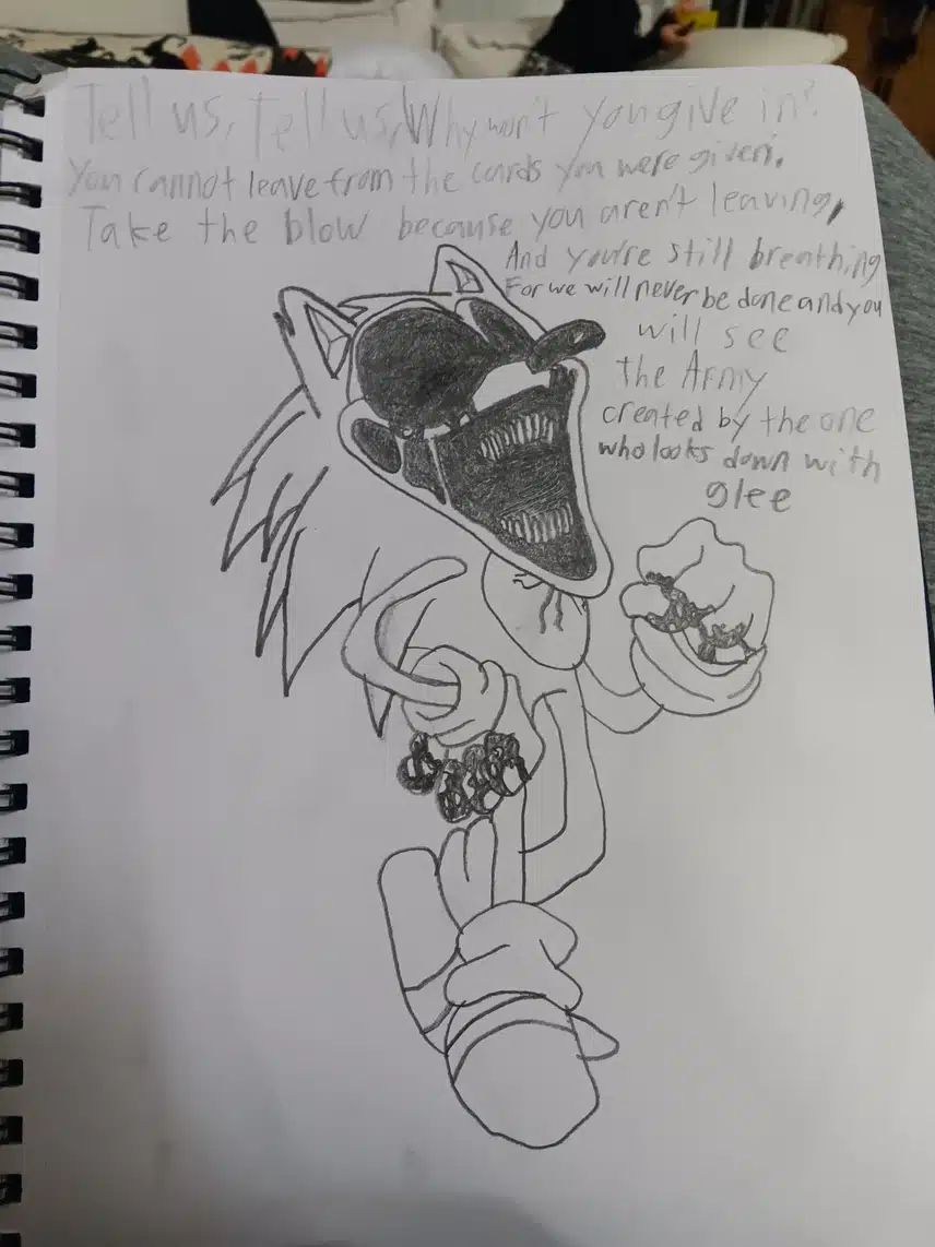Very good art work by the looks of your hand writing you seem like a young person so ill give an advice keep at it and keep practicing your art work is very creative and your penmanship could use a little improvement but practice a little bit more and you will get better good job !...