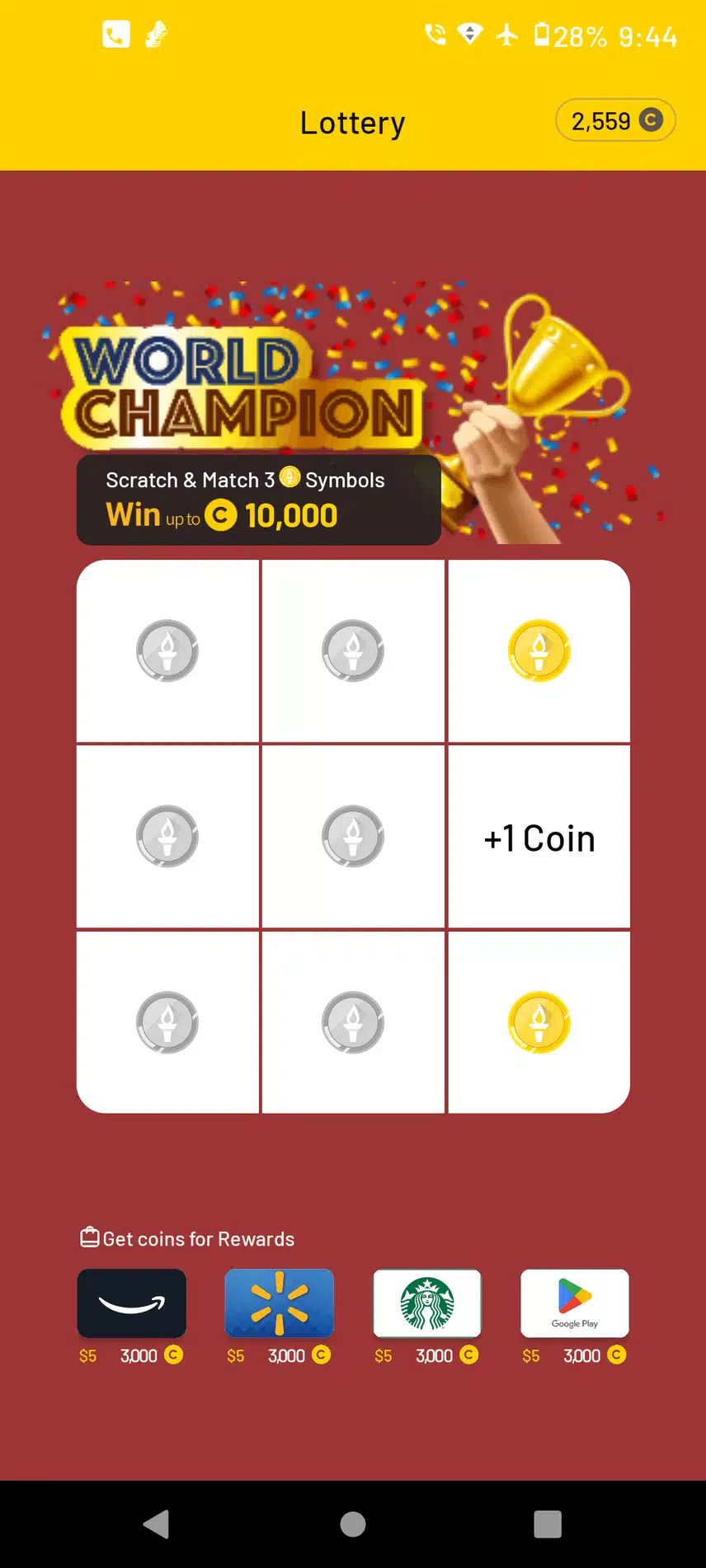 Is anyone else having this problem with the Lottery game? Every time it's always a waste of time with a "+1 coin" reward. I remember I used to get varying numbers between 1 through 7 as an example when I very first signed up for CashWalk, but now this game isn't even trying to make an effort of any difference when it's the same result every single time regardless of what coins are lined up and everything. 🤦 Especially when there are other matching coins on the board, it doesn't matter if other coins match, you only get a "+1 coin" reward if that phrase shows, which it does every single time.