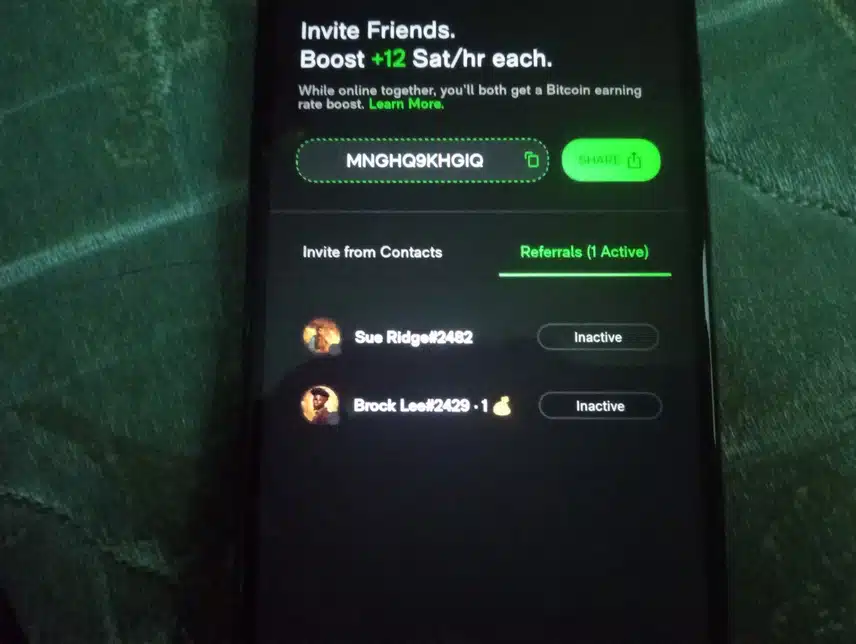 Until they ban you and everyone in your downline for no reason because they’re a straight pyramid scheme also everyone remember you only earn the bonus 12 sats an hour per person if and only if they turn theirs on as well I did this and it was hard reminding people everyday for ember to just start their mine but with bitcoin mining it doesn’t matter who I invite as my hash rate doesn’t change based off who I bring to it Download now and earn free BTC with me! My invitation code: GDCXHK App store: https://apps.apple.com/us/app/id6503180820 Google Play: https://play.google.com/store/apps/details?id=bitcoin.minning.com